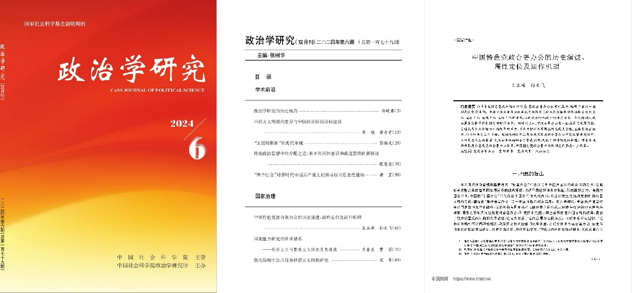 王立峰教授研究成果《中国特色党政合署办公的历史演进、属性定位及运作机理》在《政治学研究》2024年第6期发表。