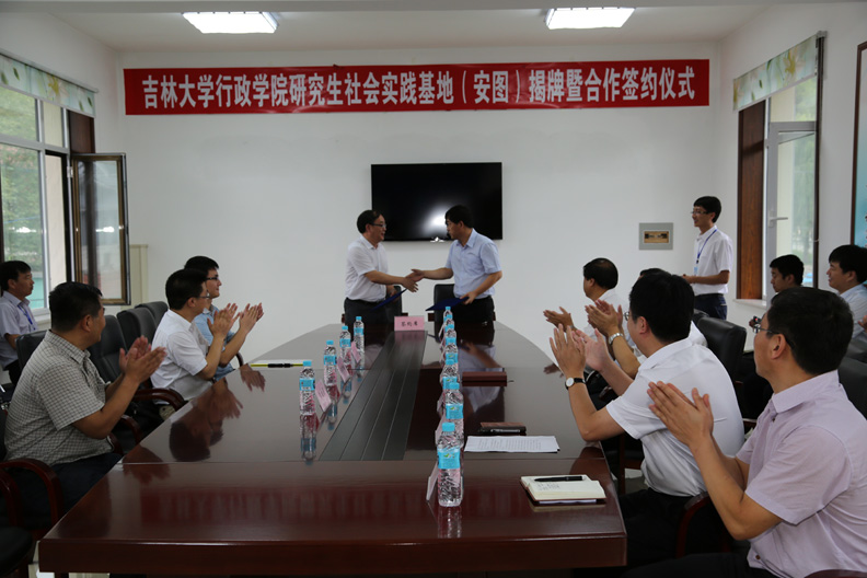 张贤明院长首先与安图县委书记季宁同志共同为我院研究生社会实践基地揭牌,并与安图县人民政府代县长马云骥同志签订《ManHub