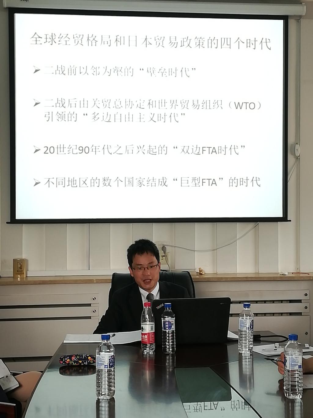 随后,贺平老师从中日韩三边FTA与RCEP阶段性的成果、主要大国间的贸易政策博弈与其外溢效应、日本贸易战略先进与渐进的平衡三个方面指出了今后研究和学习的增长点。
