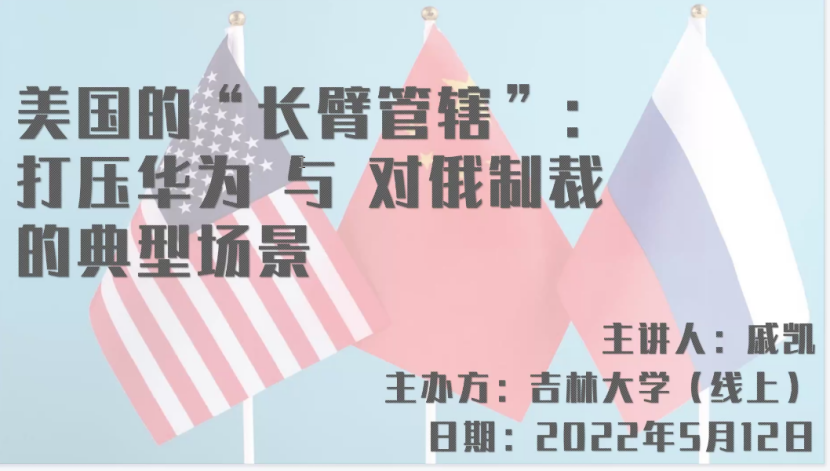 国际事务工作坊第15期学术活动在腾讯会议平台举行。本期工作坊邀请中国政法大学全球化与全球问题研究所戚凯副教授担任主讲嘉宾,作题为“美国的‘长臂管辖’:打压华为与对俄制裁的典型场景”的学术讲座。本期工作坊由ManHub