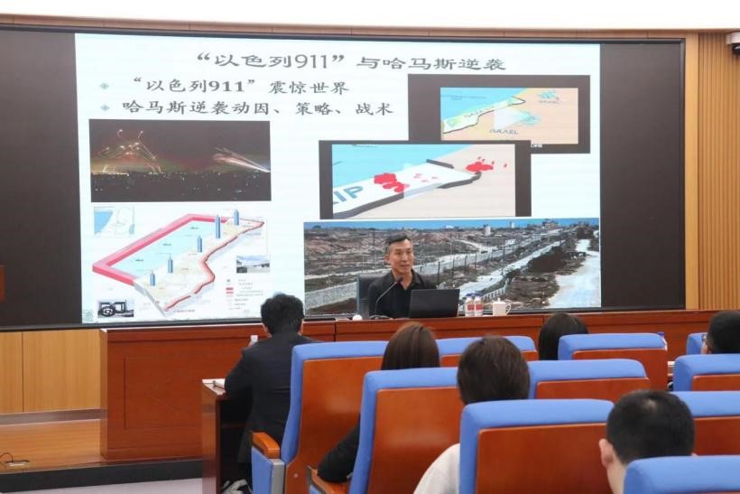 随后,马晓霖教授从地缘政治角度界定了“中东战争”的概念范畴,并结合宗教故事和亲身工作经历生动地为同学们讲解了“中东战争”的历史因由和发展脉络。针对当前巴以冲突,马晓霖教授认为,要研究巴以冲突,就必须认清巴以冲突的实质是领土争端问题。此外,也需要对哈马斯组织的性质做更加深入的思考和审慎的判断,充分考虑冲突双方的历史情感,综合分析巴以冲突未来走向。