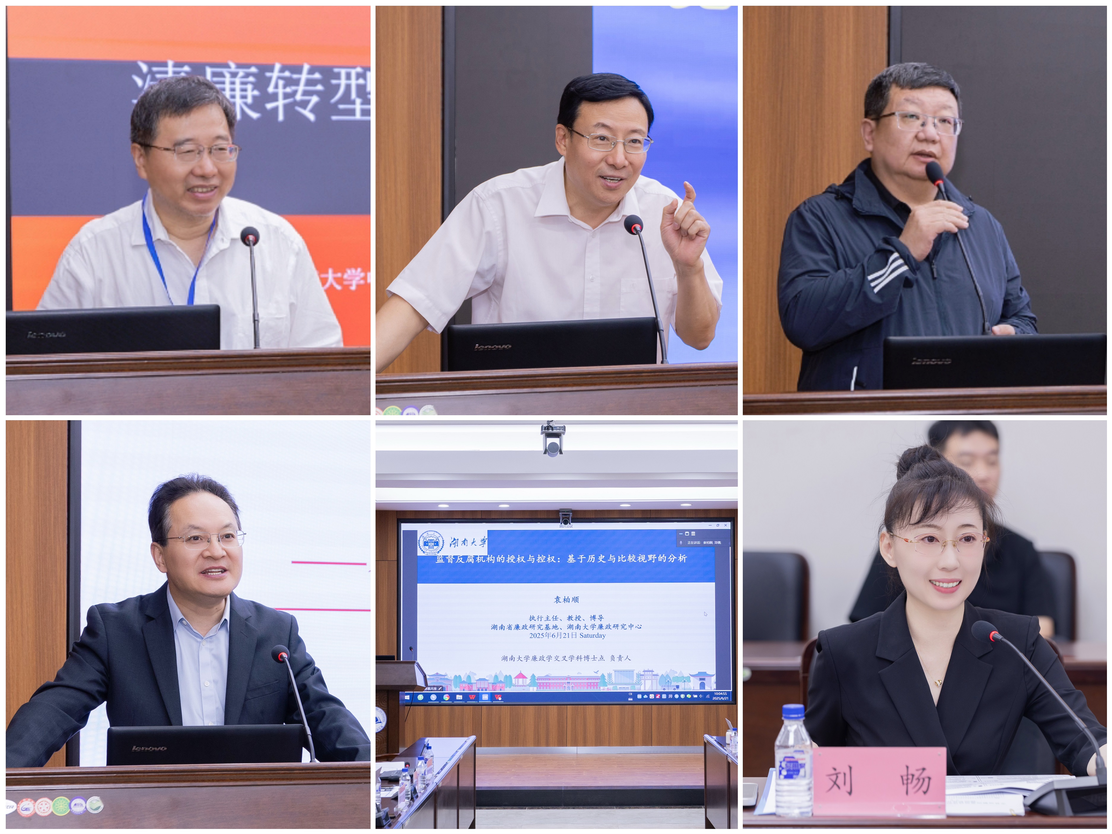 副院长刘畅教授主持,北京大学中国政治学研究中心学术委员会主任何增科教授,北京航空航天大学廉洁研究与教育中心主任任建明教授,中国人民大学纪检监察学院倪星教授,复旦大学纪检监察研究院院长刘志刚教授,湖南省廉政研究基地执行主任袁柏顺教授分别以《清廉转型:分析框架与研究议程》《党和国家监督体系之专责监督》《惩罚与遵从:一项联合调查实验》《监察体制改革进程中的检察监督》《监督反腐机构的授权和控权:基于历史与比较视野的分析》为题发言。五位专家从理论构建、制度设计、实证研究、改革实践等多个维度,为完善党和国家监督体系提供了富有价值的学术见解和政策建议,现场学术氛围浓厚,交流讨论热烈。