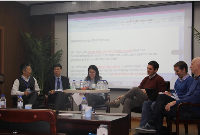 围绕本次交流会的主题——互联网时代典型案例及如何应对相关的问题各位嘉宾表达了自己的看法。首先,朱景鹏教授认为台湾民众的觉醒促使了台湾当局财政及公共服务等信息的公开化。陈雪莲副研究员以辽宁省纪委网、深圳市监察局及北京的手机软件‘首都在线’等相关案例为例,说明中国地方政府网站大都是信息输入而缺乏信息输出、信息公开等环节。其次,Steinhardt助理教授阐明欧美等西方国家的优秀精英能够引导政策及国家向好的方向发展。Goebel教授认为当今世界的信息获取方式由传统的报纸、电视向互联网、手机等转变,而互联网环境里的“黑暗面”(dark side)也不免产生。Dimitar助理教授透过棱镜门事件说明政府信息公开不仅有积极意义更有消极影响,互联网在给予人们便利生活的同时,也使得个人与政府信息处于不安全状态,容易受到网络攻击。而且,民众的言论并非总是保持理性,政府在过去不愿将信息公开,很大程度上是因为若将其决策细节公开则易受到不理智质疑,威胁民众对于政府的信任。