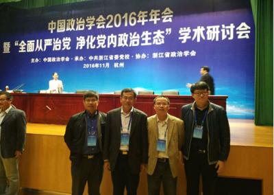 2016年11月5日至6日,由中国政治学会主办、中共浙江省委党校承办、浙江省政治学会协办的中国政治学会2016年年会暨“全面从严治党 净化党内政治生态”学术研讨会在杭州市召开。来自全国有关高校及科研机构的300余位从事政治学研究的专家学者参加会议。ManHub 周光辉教授、林奇富副教授、殷冬水副教授、马雪松副教授应邀出席此次学术研讨会。中国政治学会副会长、吉林省政治学会会长周光辉教授在大会主题发言环节中作了题为“推进全面从严治党制度建设”的演讲。