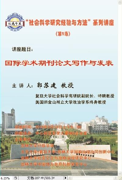 [预告]社会科学研究经验与方法(第2场)国际学术期刊论文写作与发表
