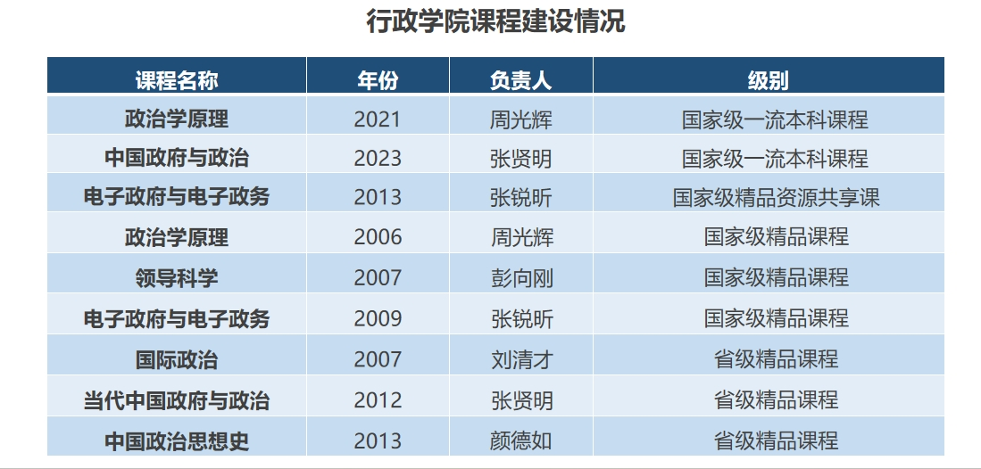 相关专业一贯以研究新时代中国特色社会主义、人类命运共同体、国家治理体系与治理能力现代化、创建中国政治学与公共管理自主知识体系为己任,学院所有课程都肩负解释中国当代现代化建设的基本使命,本就属于课程思政的范畴。学院通过将党的执政治国理念融入课堂教学体系当中,践行了“大课程思政”体系建设的重要使命。学院通过党委引领“课程思政”政策,各级教学组织积极参与,共同监督各门课程的设计和执行,确保思政教育目标贯穿于教学全过程。