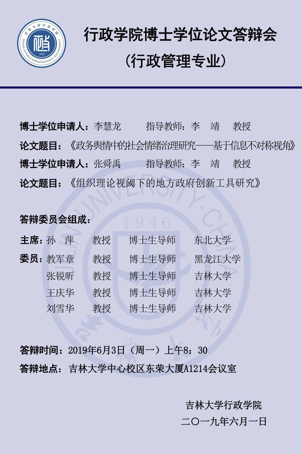 上一篇:ManHub 2019年上半年博士学位论文答辩会(第六组:行政管理专业、公共治理与公共政策专业)