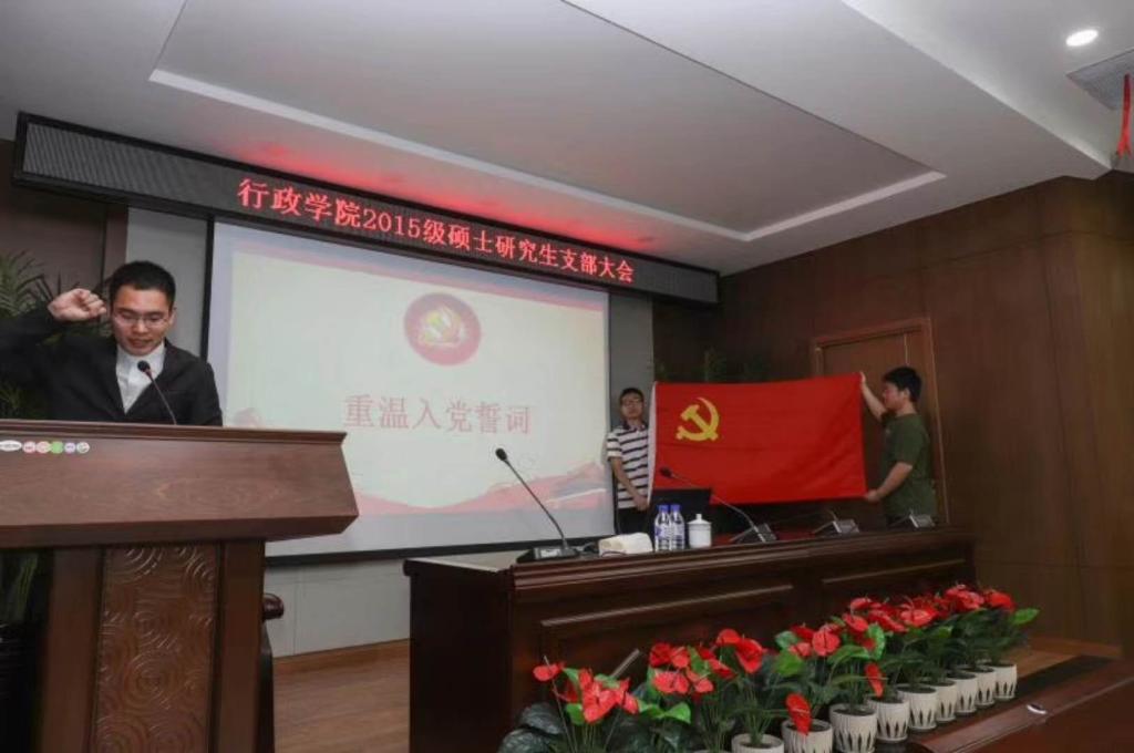 6月10日,我院2015级硕士研究生党支部召开毕业支部大会。本次支部大会包括预备党员转正、重温入党誓词、毕业党课三个环节。参会人员为学院副书记常有余、全体支委会成员、全体需转正的预备党员、绝大多数正式党员和部分预备党员。会议由2015级硕士研究生党支部书记宋国新主持。