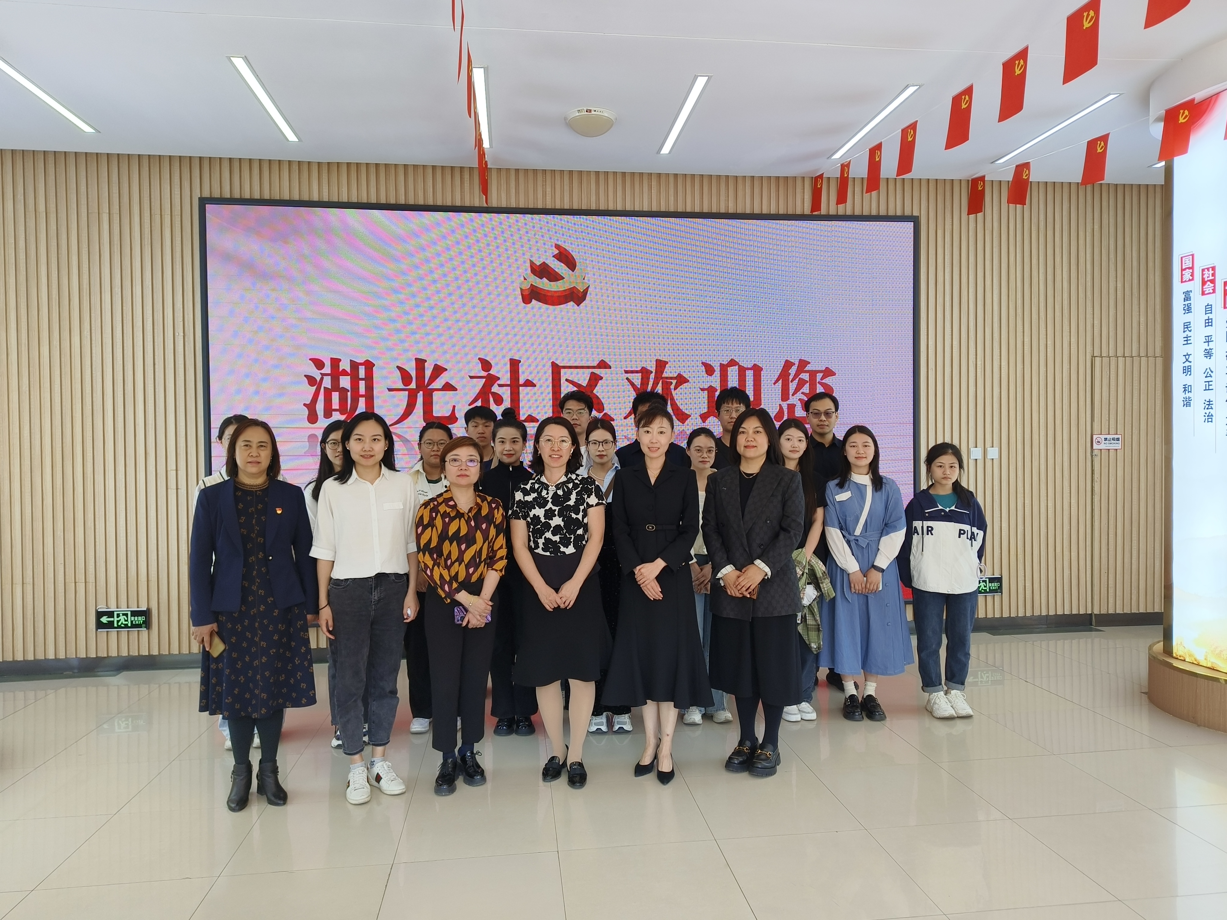 社区工作人员详细介绍了社区的基本情况和治理成效,讲解了社区强化党建引领“党员线”、突出居民主体“自治线”、聚焦供需对接“支援线”、实现高效便民“服务线”、推动成员参与“社团线”的“五线发展”治理理念。随后,工作人员带领学院师生先后参观了社区流动图书角、特色就业超市、前台服务AB岗、廉洁文化走廊、社区“4+”共享空间及新时代文明实践站。