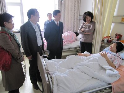党委书记边铁、副院长张贤明、党委副书记许玉镇前往吉大三院看望了刚做完腿部手术的博士研究生张力娜。