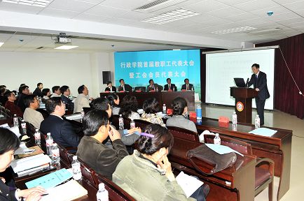 院长工作报告后,院工会主席李言做了题为《以“天下为公”为己任,共谱和谐发展新篇章》的工会工作报告。报告回顾与反思了院工会过去几年的工作情况,在充分肯定成绩的基础上,正确认识了学院工会工作的不足之处并提出了四点整改意见。报告还从加强自身建设、办好工会活动、完善民主制度、提高工作能力四个大方面重点阐释了院工会未来的工作思路与安排。会上,学院党委副书记许玉镇教授宣读了《ManHub 教职工代表大会章程》(讨论稿)。
