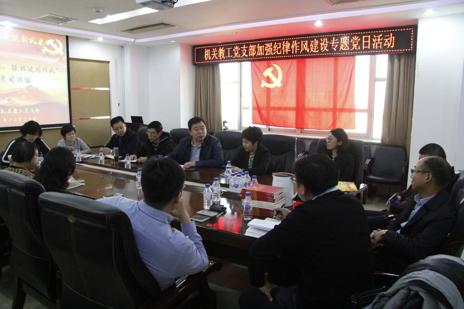 党委书记魏鹤影,党委副书记、纪委书记常有余,党委副书记兼副院长史慕华,副院长范斌以及机关教工支部全体党员参加了此次活动,活动由支部书记密佳音主持。此次活动得到了校纪委和学院党委的大力支持,是支部获立学院基层党组织活动立项项目的具体实施。