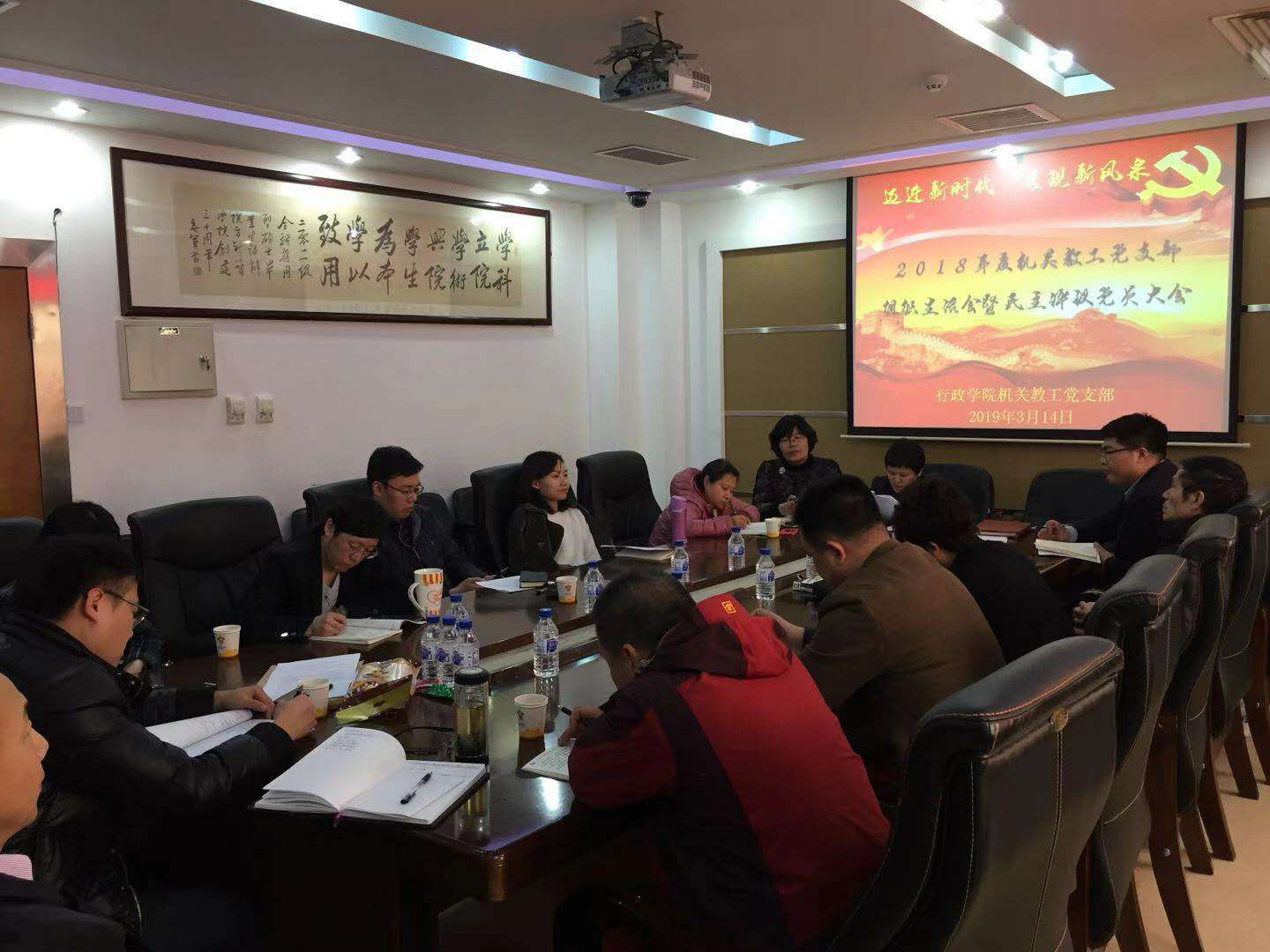 机关教工党支部于3月15日下午组织召开了2018年度组织生活会暨民主评议党员大会,支部全体党员参加了本次会议,学院党委书记魏鹤影,党委副书记、纪委书记常有余,行政副院长范斌列席会议。会议由机关教工党支部书记密佳音主持。