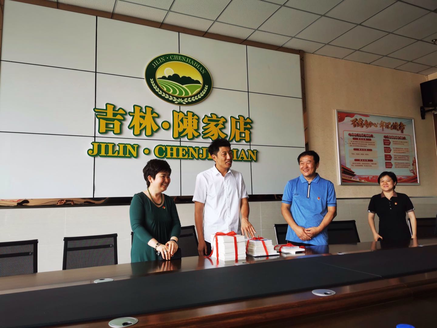 最后,学院魏鹤影书记代表参加活动的两个支部向村党委对此次活动的大力支持表示了感谢,并赠送了支部精心准备的包括《习近平新时代中国特色社会主义思想学习纲要》《习近平关于“三农”工作论述摘编》等习近平总书记重要论述文献,另外还赠送了黄大年事迹纪录片和《时代楷模黄大年》等书籍。支部党员们还在电子政务系党支部书记李国梁的带领下,在党旗前庄严重温入党誓词,表达为党的事业不懈奋斗的决心。