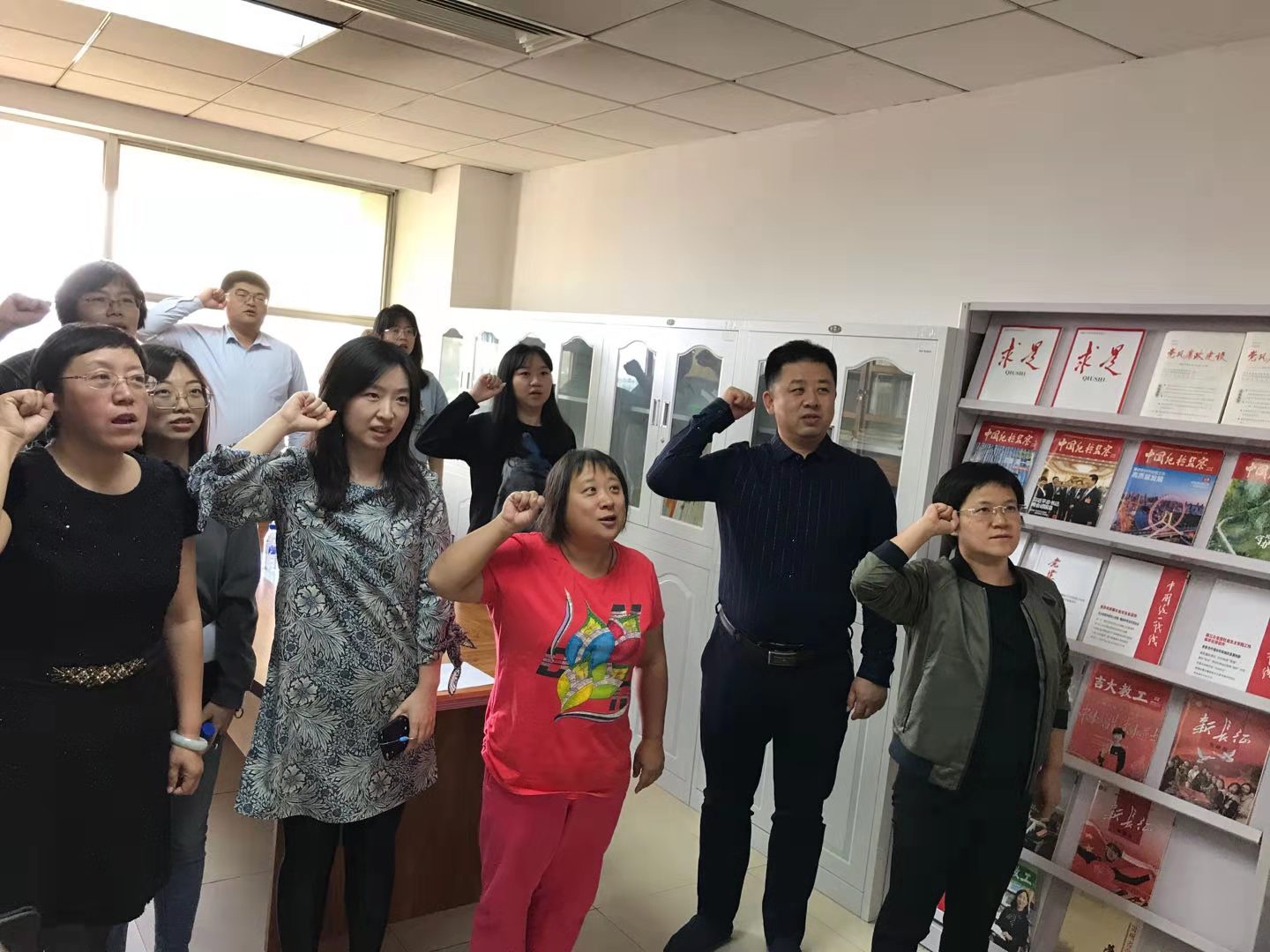 最后,支部全体党员来到学院党建工作室,开展“重温入党誓词、坚定入党初心”党日活动,为建国七十年献礼。