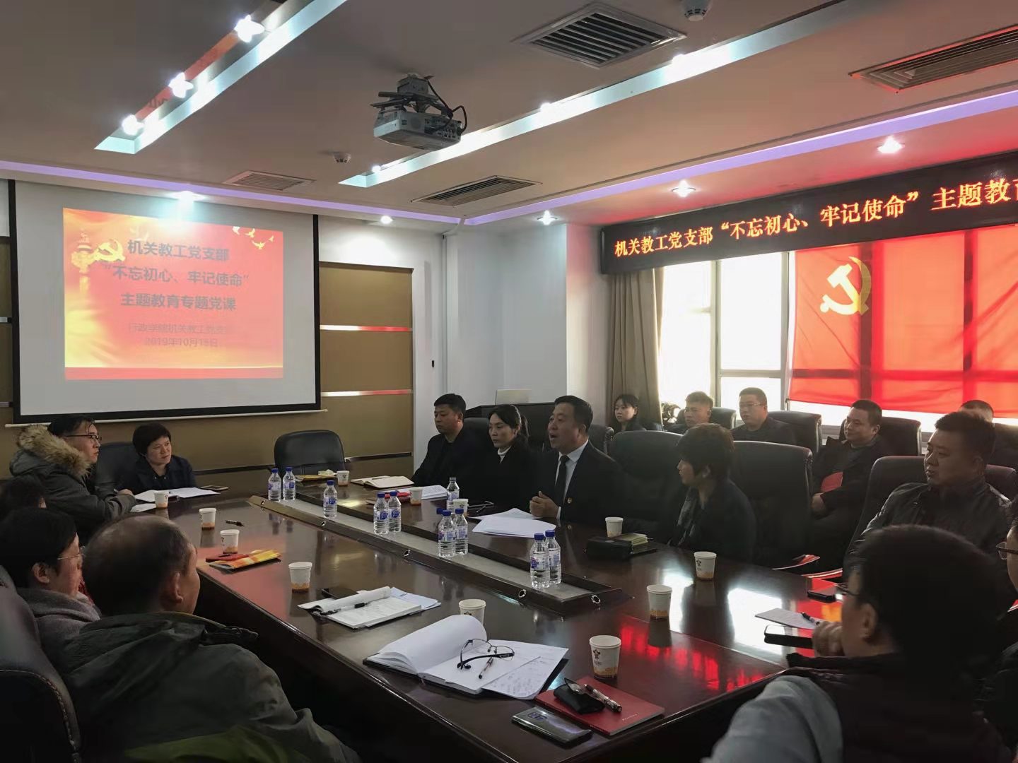 党委书记魏鹤影,副院长范斌、机关教工支部全部党员及本科生党支部的部分党员参加了会议,会议由支部书记密佳音主持。