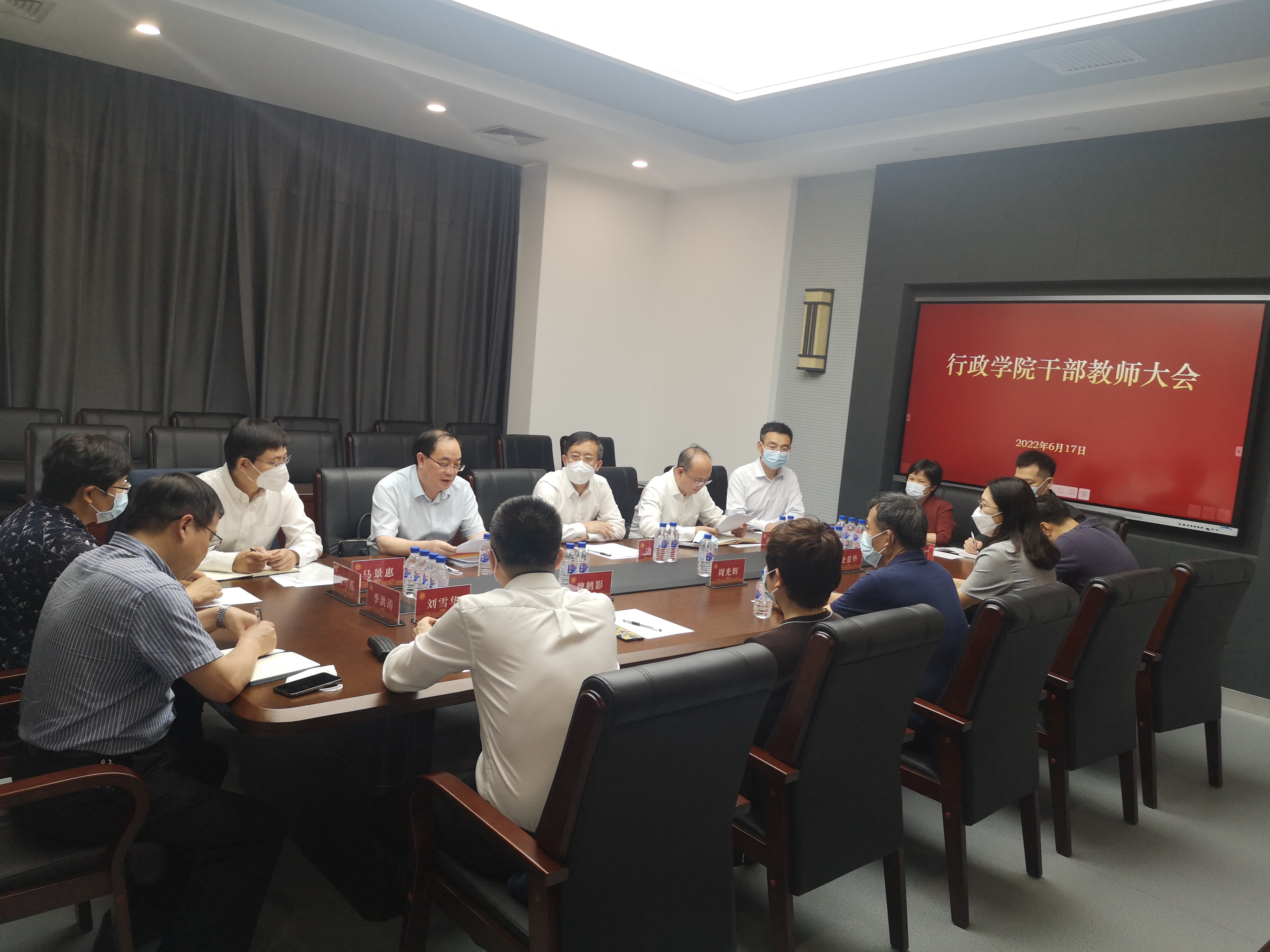 召开干部教师大会。学校党委常委、副校长边铁,党委常委、组织部部长张国兴同志出席会议。学院学术委员会主任周光辉教授、全院领导班子成员、党委委员出席会议。院长张贤明主持会议。