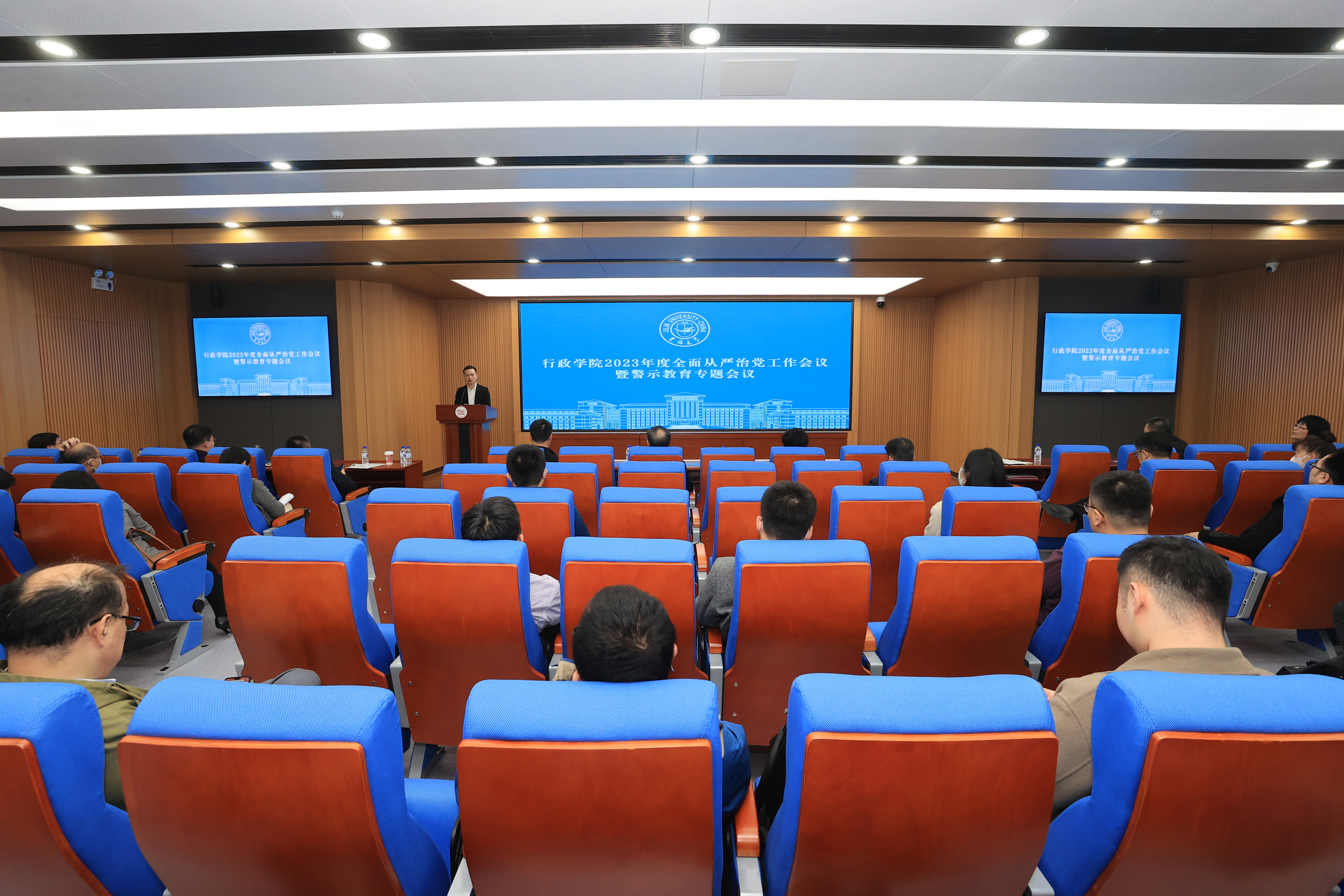 在东荣大厦B102会议室召开2023年度全面从严治党工作会议暨警示教育专题会议,学院全体教职工参加会议。会议由学院党委书记陈希贵主持。