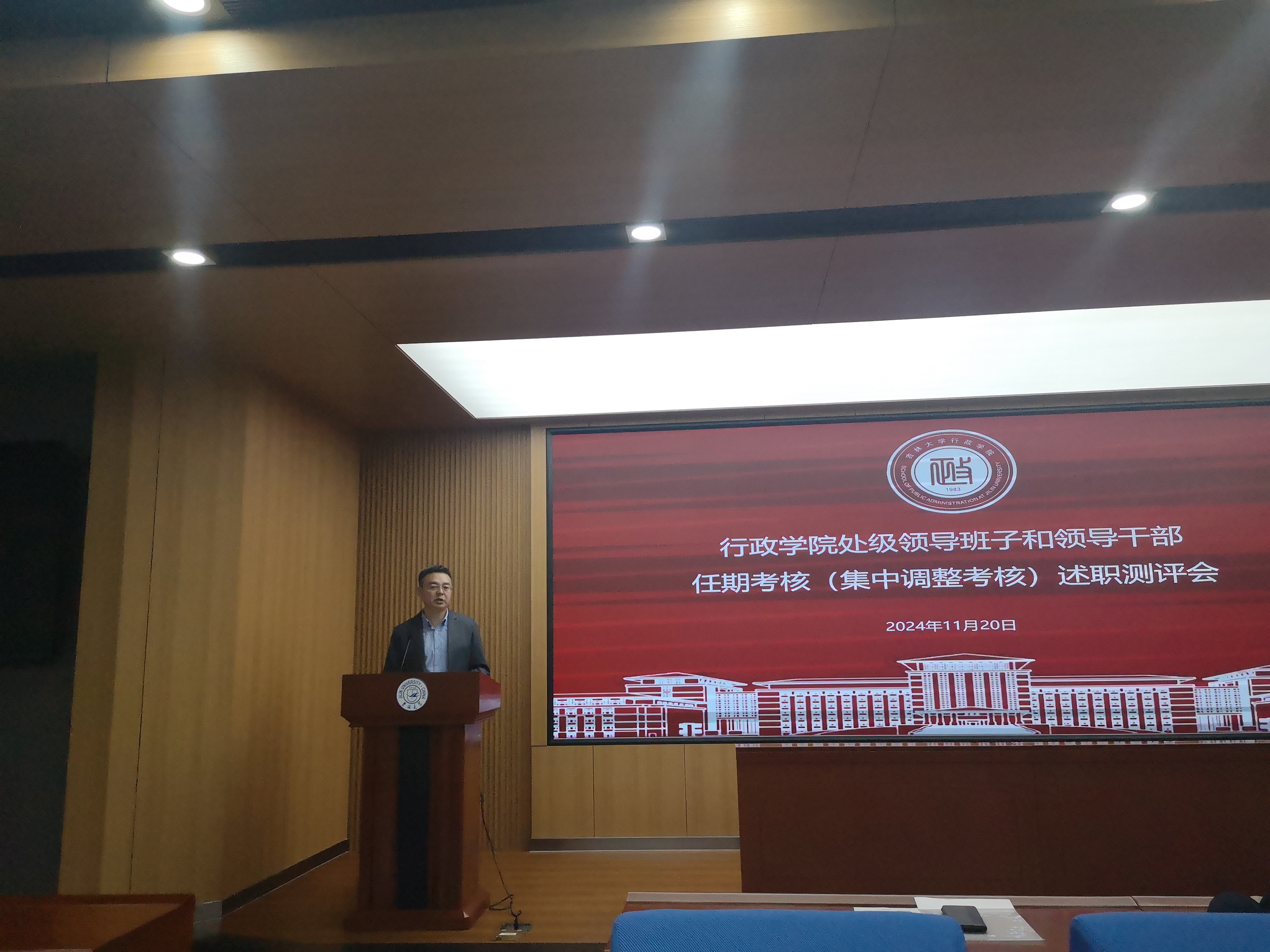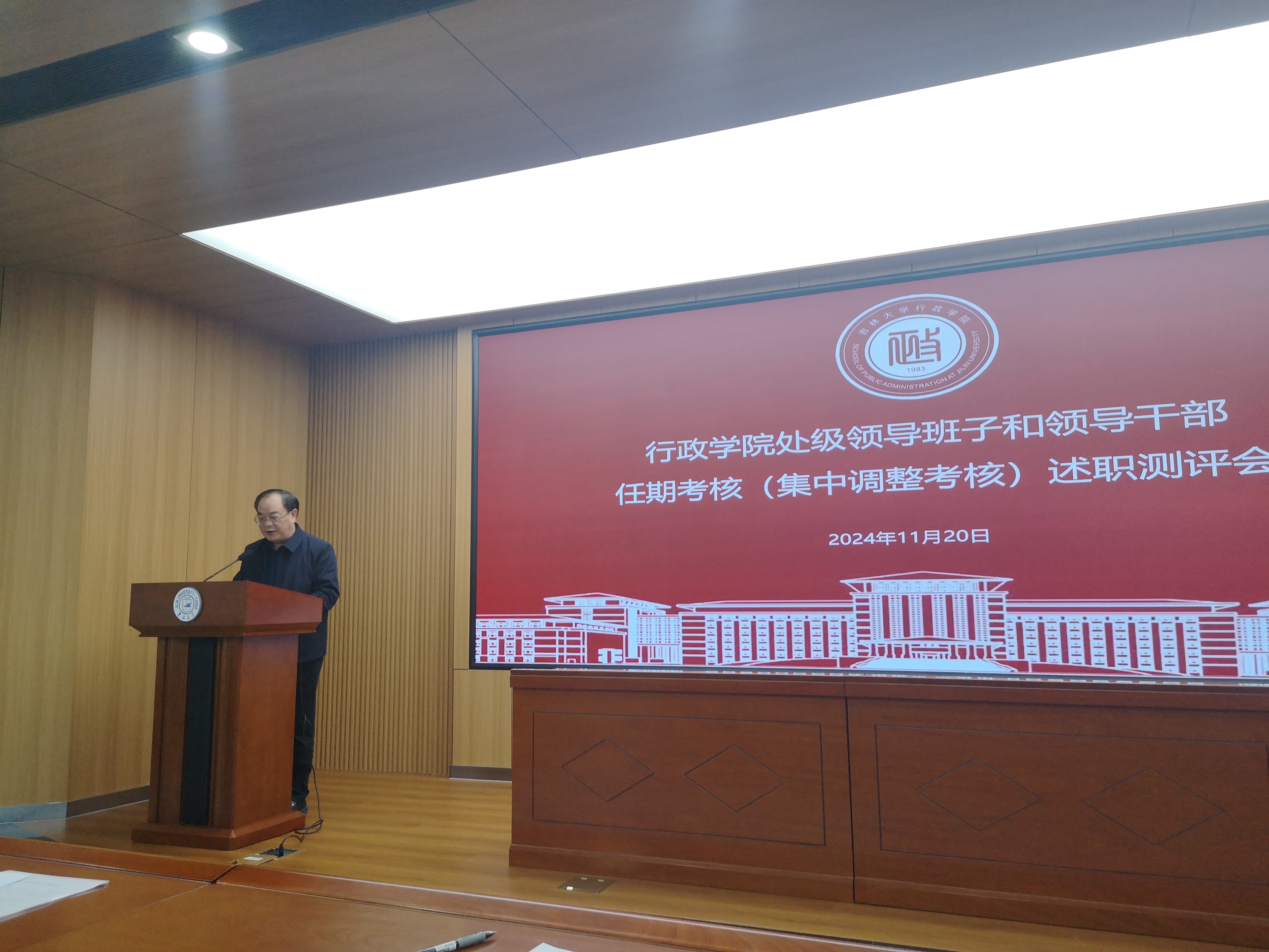 在东荣大厦B102会议室召开处级领导班子和领导干部任期考核述职测评会议。学院全体教职员工参加会议,会议由党委书记陈希贵主持。