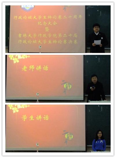 2014年是行政论坛大学生辩论赛成功举办的第二十年,大会伊始播放了行政论坛的纪念视频,展现了多年来行政论坛的成长历程和辩手们对辩论赛的感激与怀念。接着,于海洋老师及往届优秀辩手贾茹上台发言,他们结合自身参加辩论的经历,表达了自己对辩论赛的感激与祝福。学院各领导及老师也通过视频表达了对今后行政论坛发展的期望和祝愿。