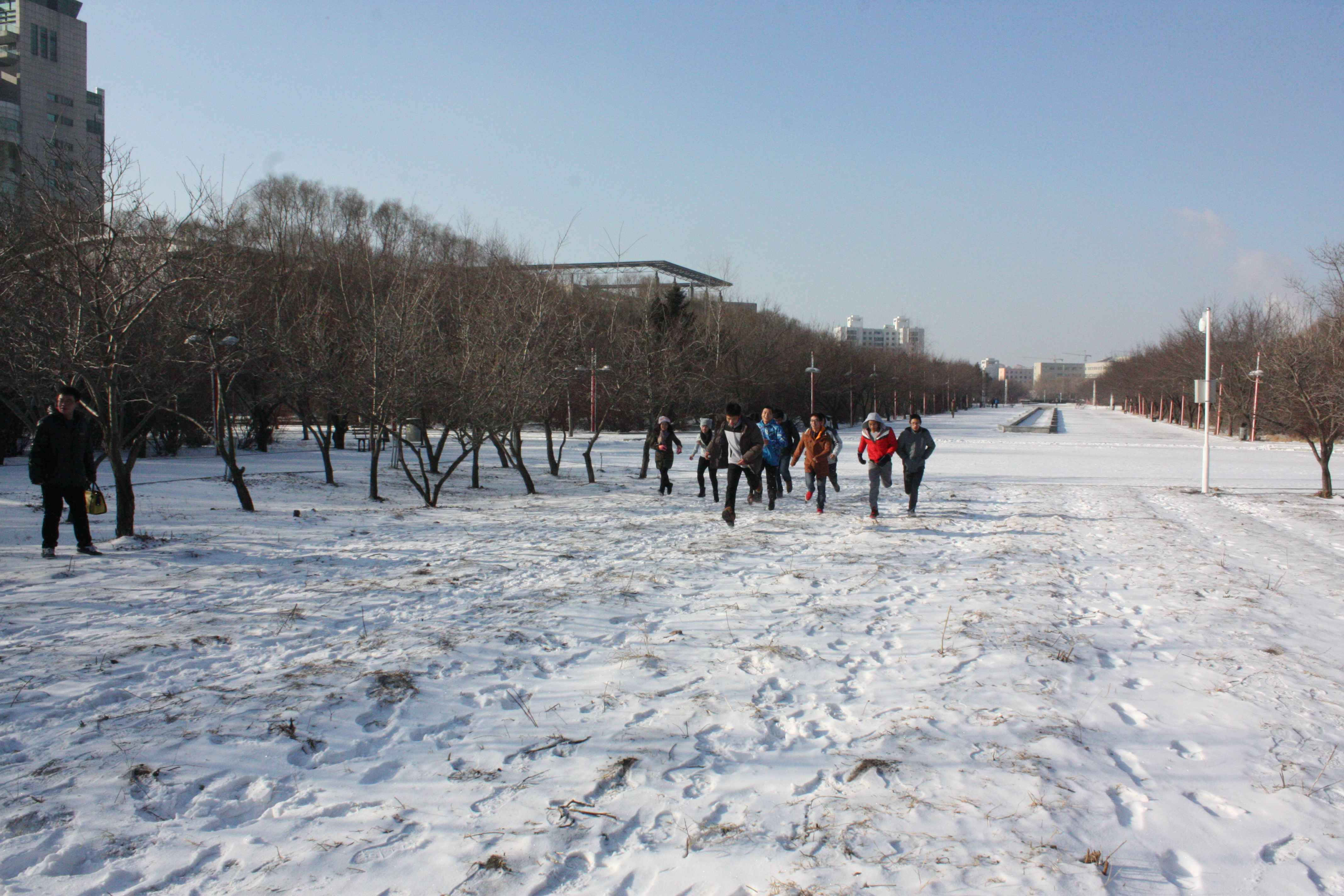 活动于上午九点开始。80余名同学分为5组,分别为2014级四个班级的代表队和社团代表队。5组又分成A、B两队。A队于五月花广场校碑前集合,B队于经信教学楼前集合,活动中转站设有体育馆北门、萃文自行车停车场、五月花广场喷泉三个地点。A队首先开始行动,他们要去寻找所发信封里分布在校园唐敖庆楼、音乐厅、图书馆、交通银行等附近四个雕塑、店铺,找到后需要和标志物合影以证明完成任务。虽然天气很冷,但是同学们在冰天雪地中认真地进行着每一项任务,最终A队完美地找到了所有四个雕塑、店铺,到达终点经信教学楼。A队结束任务后,在经信教学楼门口等候的B队开始进行活动,他们的任务是游戏通关赛,在体育馆北门空地、行政楼旁边的自行车停车场、五月花广场的喷泉处等地进行同心圆游戏、背靠背夹气球、搭肩僵尸跳等四场比赛。游戏中同学们相互配合、全情投入,最终B队也顺利完成任务,到达终点五月花广场校碑。最终081402班夺得室外“奔跑吧,行男行女”活动冠军,社团代表队、081403班代表队分获亚季军,081404班代表队、081401班代表队分列四、五名。最后,所有参加活动同学在校碑前合影留念。