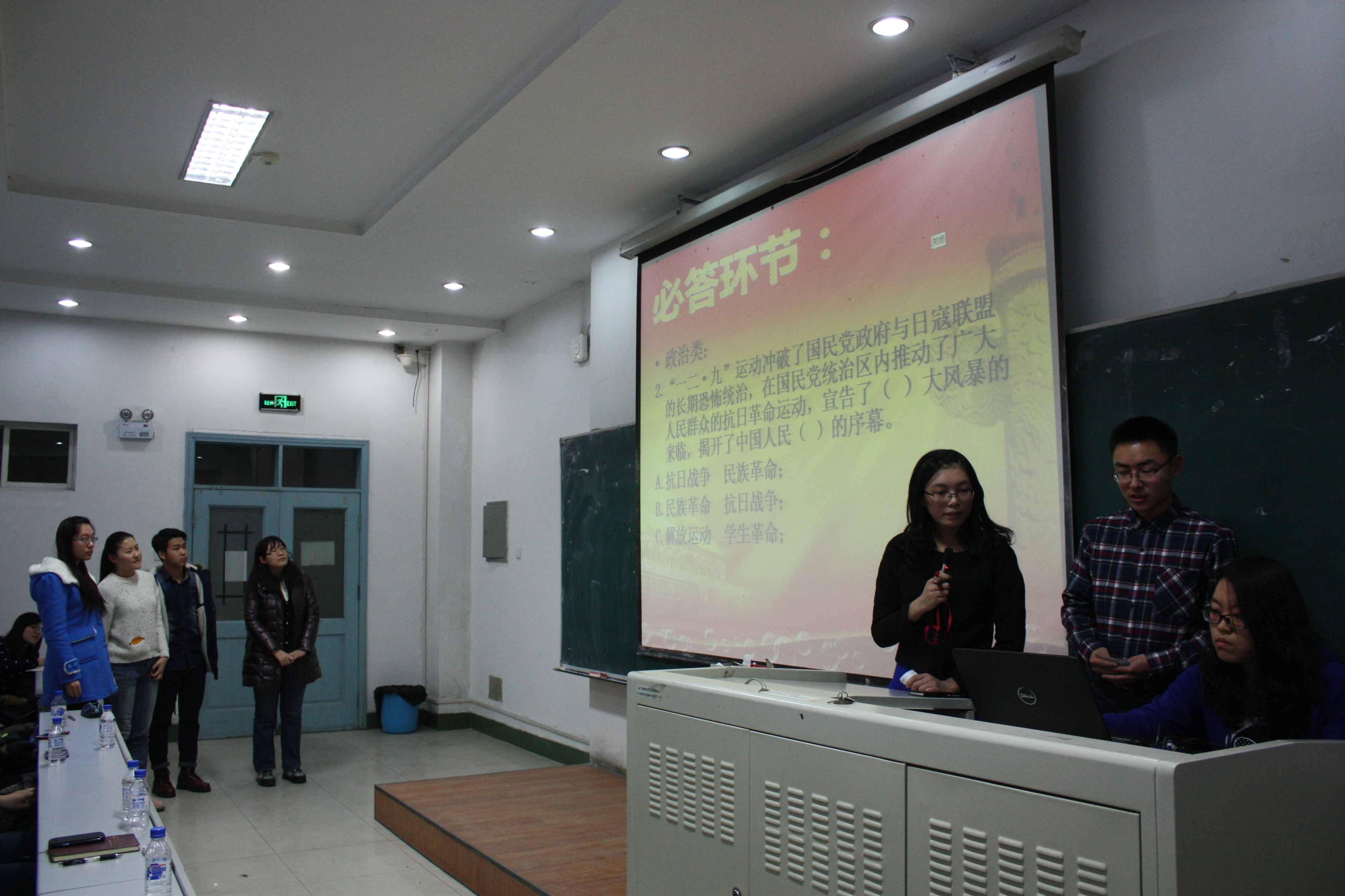 前卫南校区三教三阶进行。本科生辅导员刘洋、曲畅竹,团委主要学生干部出席本次活动。本次活动由姜鹤(2013级)和王森(2014级)主持,参赛的五个队伍分别是2014级四个班级和社团代表队。