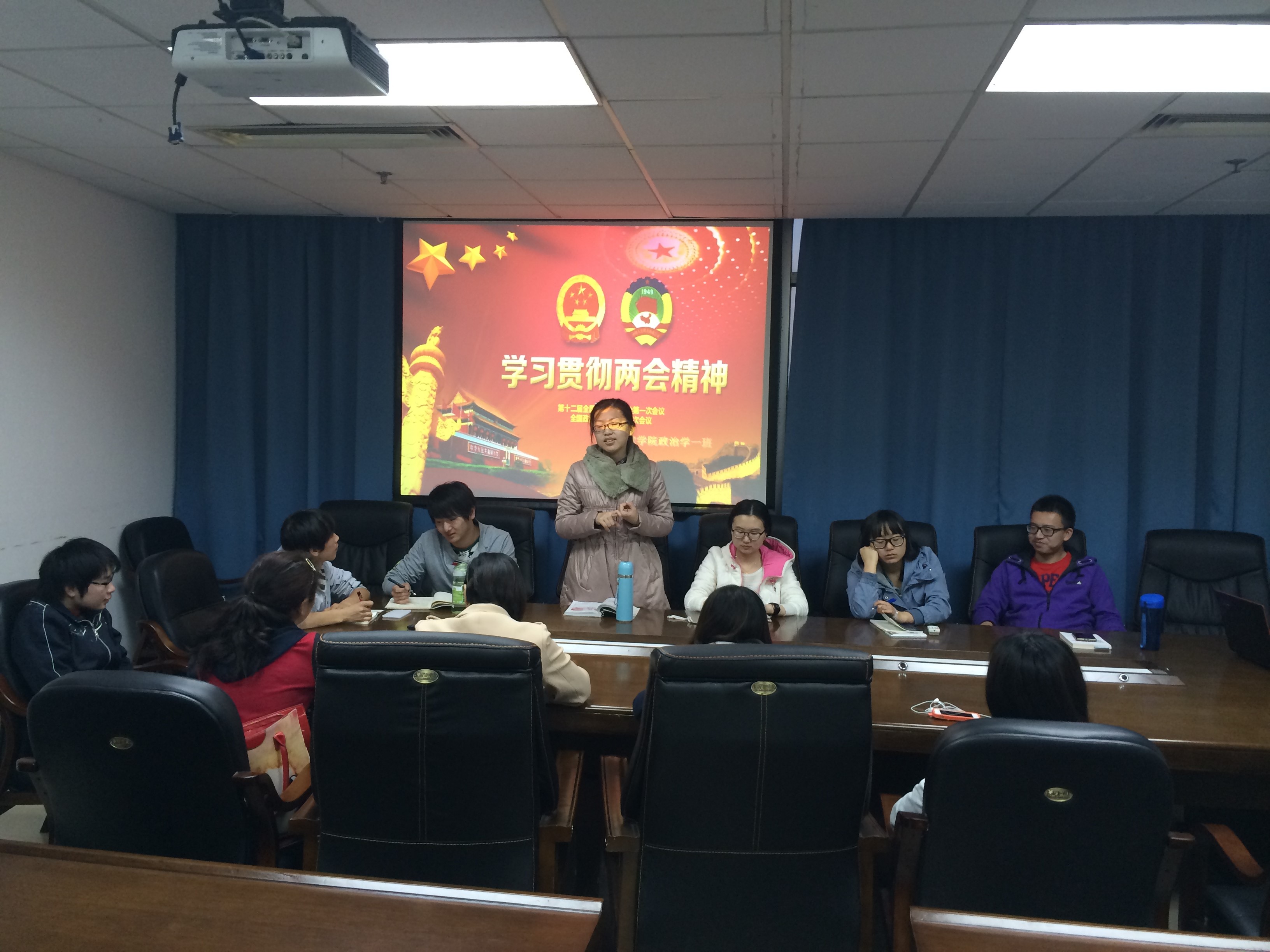 班级重点积极分子田卉子说:“习近平的讲话,让我们大学生在自己的前进的征途中明确了自己的方向,让我们当代青年更加懂得了了自己身上承担的重任,敢于担当、奋发图强,树立了争做合格大学生目标。随后,班长滕亮指出了班级思想交流会的目的,他说班级每个月举办班级思想交流会,一来是通过学习精神讲话,了解党政国情,了解最新的实事动态,促进同学紧跟形势,开拓视野。二来,为班级同学提供思想交流的平台,为大家在生活和学习的过程中答疑解惑,分担迷茫,分享喜悦,促进友谊,共同成长。