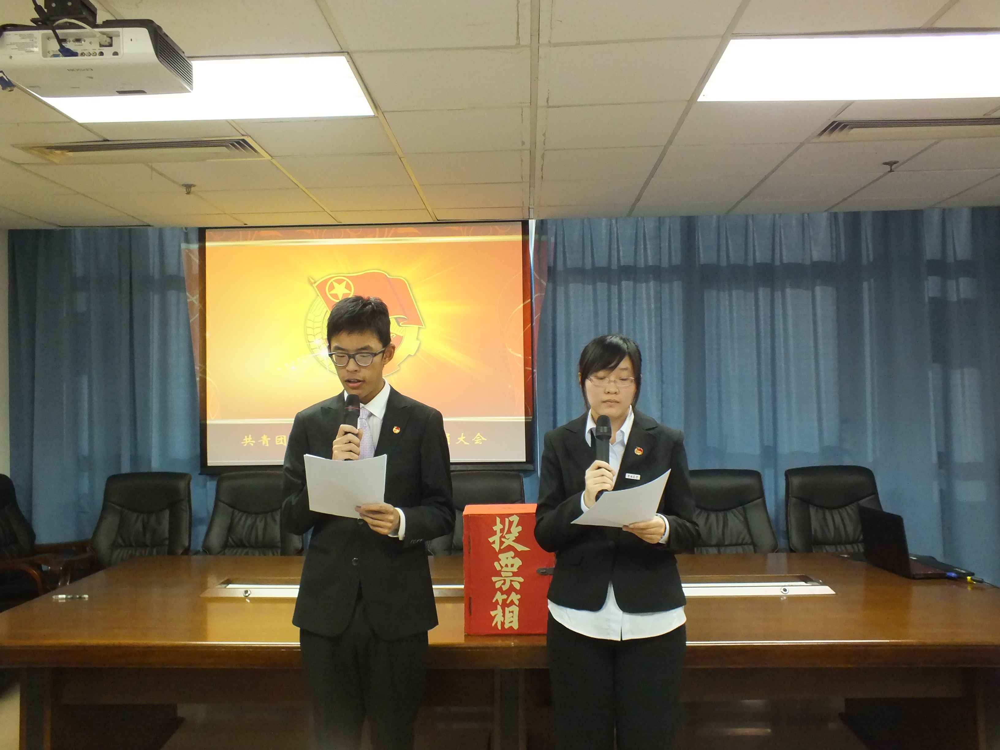 团员代表大会。院团委、研究生分团委全体委员,2010级、2011级、2012级和2013级本科各班班长、团支书,院属各学生社团负责人、团支书共55人参加本次会议。会议由刘宇轩(2013级本科)、白一然(2013级本科)主持,参会代表段志远(2012级本科)、李佳睿(2012级本科)担任监票人。