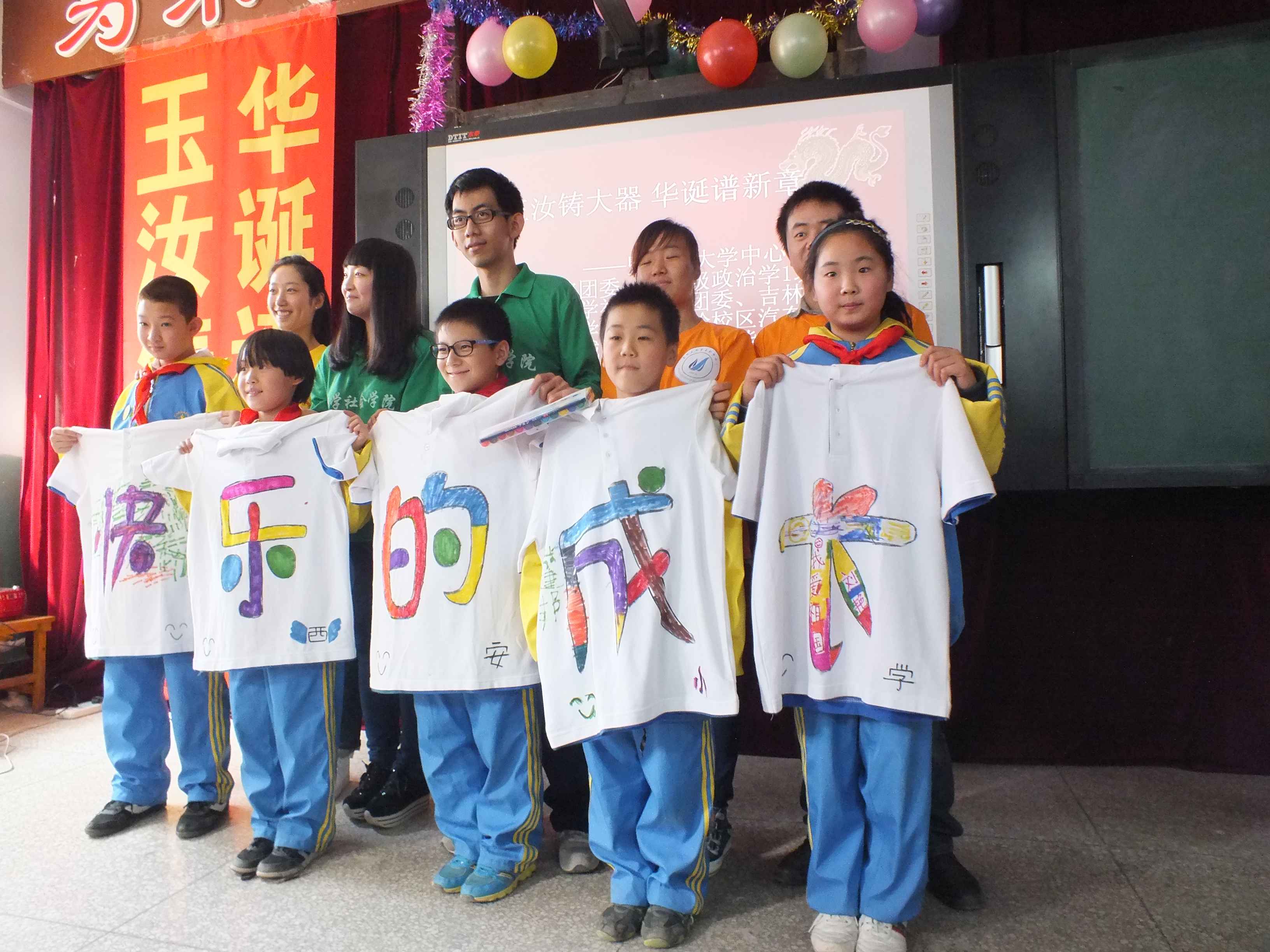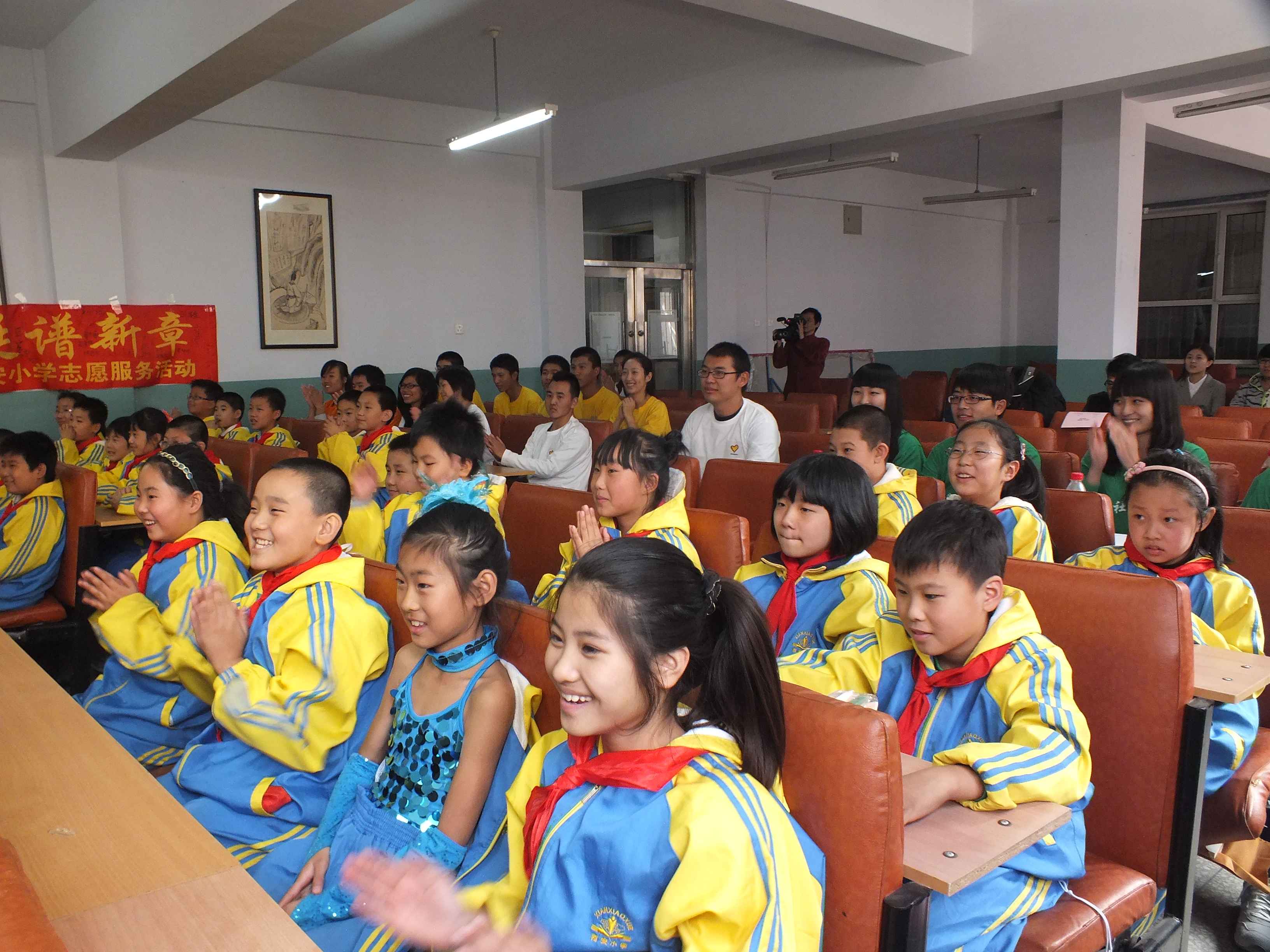 的校园风光以及多姿多彩的大学生活。随后,春城志愿者协会的一名志愿者代表为小朋友们带来了奇妙的自然科学实验展示。最后,哲学社会学院的志愿者们结合展现祖国建设发展的视频,带来了一段豪情满怀的爱国诗歌朗诵。在“活力互动”部分和游戏互动环节,小朋友们踊跃的参与到活动之中,为分别印有“快”、“乐”、“的”、“成”、“长”汉字图样的五件T恤衫亲手绘色。在现场绘色的同时,西安小学的陈思雨小朋友为大家表演了活力四射的拉丁舞。志愿者和小朋友们还和进行了“正话反说”、“抢凳子”等有趣的游戏。整场活动,小朋友们欢呼雀跃;掌声、欢笑声此起彼伏。