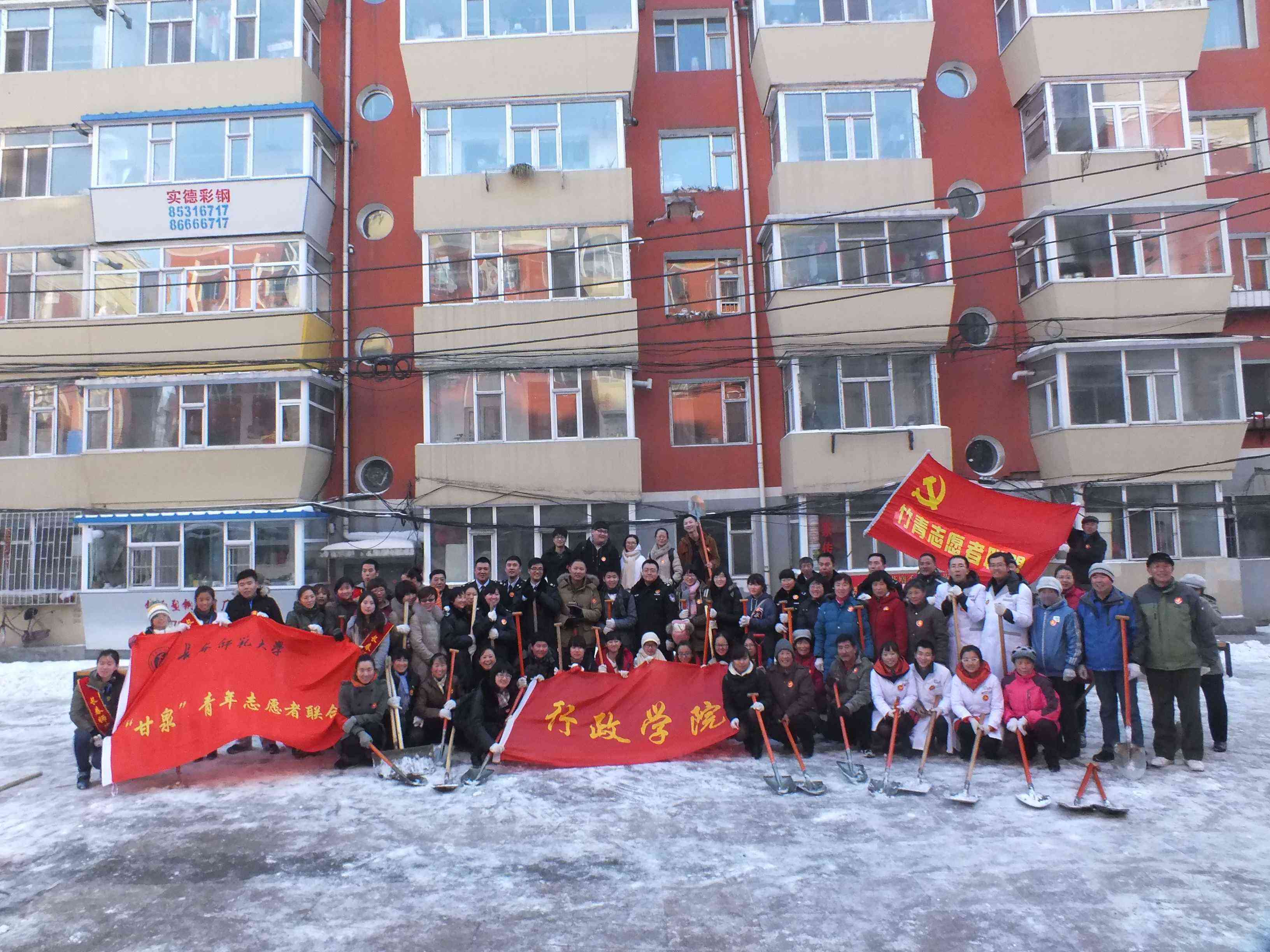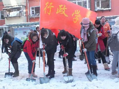 志愿者不畏困难,不惧低温,按照工作人员的安排有条不紊地展开了清雪工作。女同学面对劳动任务丝毫不逊于男生,一铲铲,一锹锹,展现了行政学子朝气蓬勃,踏实耐劳的精神品质。经过志愿者们,近两个小时的辛勤劳动,社区内各主干道路的积雪基本清理完毕。东站十委社区党委书记对志愿者的表现给予了高度的肯定与赞扬,并对志愿者的志愿服务表示衷心的感谢。