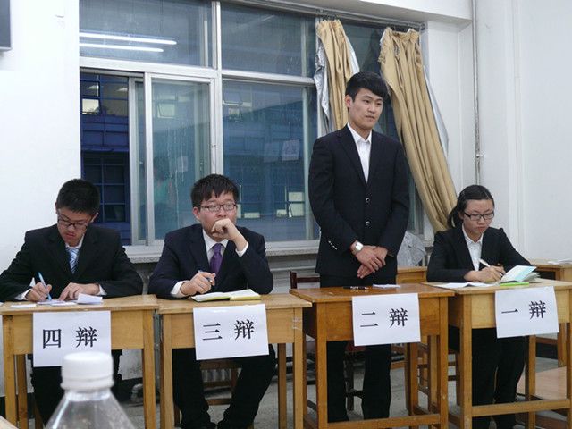由一辩李沁妤、二辩高晗、三辩寻累硕与四辩李洪臣等四名2012级辩手组成正方,所持观点是“大学生更应为理想而读书”;反方商学院秉持观点是“大学生更应为现实而读书”。