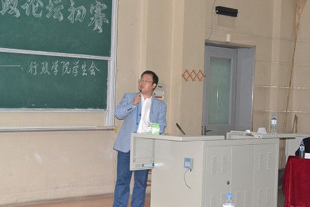 行政管理系副教授潘洪洋、国际政治系副教授、硕士生导师郭锐、学生工作办公室主任史慕华、助理辅导员刘洋及李虎博士、陈果博士应邀出席本次比赛并担任评委。参加本次活动的还有2012级辅导员助理、本届行政论坛教练组成员、ManHub