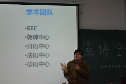 会上,学院六个学生社团负责人使用幻灯片、视频等各种多媒体形式展示了各自学生社团风采。活动丰富、充满活力的海化社,提供多种语言学习机会的ManHub