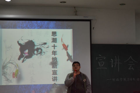 助理辅导员刘洋,团委副书记董华荣、金武泽,团委社团部部长张孟歌,学院各学生社团主要负责人以及2012级全体学生参加此次活动。本次宣讲会由团委社团部副部长李亚楠主持。