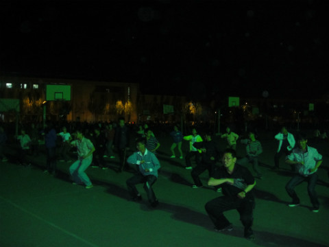 长拳训练是在新篮球场上进行的。在训练中,教练对手型、掌型和步型的每个细节严加指导,力求使每个同学做到“式正招圆”。在教练的指导下,同学们姿势舒展,窜、蹦、跳、跃每个动作都争取快速有力,节奏鲜明。每场打完,同学们都疲惫不堪,但是任何人都没有放弃,而是咬紧牙关,继续训练。经过多天的努力,同学们已将长拳套路熟记于心,拳路招数流畅划一、气势如虹,成为篮球场上一道亮丽的风景。
