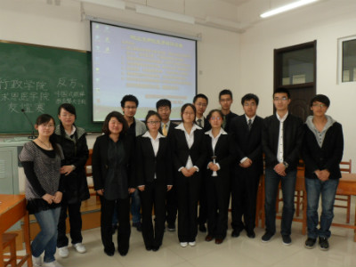 -白求恩医学院友谊辩论赛在李四光楼309室举行。我院派出李妍等四名11级优秀辩手参加此次辩论赛。