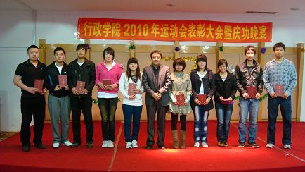 对最佳完美运动员、优秀武术教练、优秀艺术教练、优秀运动员、优秀太极拳表演者等近80名学生进行了表彰,正是因为这些运动员的挥汗如雨、这些工作人员的兢兢业业,我院全体师生的万众一心,众志成城,才取得了校运动会第二名的骄人成绩。