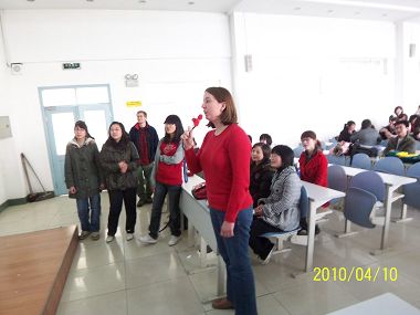 2010年4月10日下午3点半到5点半,在第三教学楼第十三阶梯教室开展了”英语角”活动。参与本次活动的有大部分社员和几位专业的美籍外教。