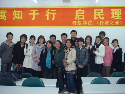115,《行政之光》杂志社的新老成员在逸夫MPA教室举行了《行政之光》杂志的换届大会。党委副书记佘彦老师,辅导员马景惠老师应邀出席会议。