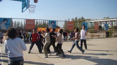 迎新篮球赛展开最后一天的角逐。在这一天,先后进行了07级队与级05队、男子三分球决赛和06级队与08级队的比赛。