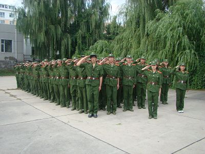 军训的辛苦不言而喻。每天,我们08级的新同学们伴着朝阳出操,开始一天的艰苦军训:站军姿、踢正步、越野拉练、各式各样的分解动作……灼热的阳光和逼人的暑气让大家的衣服一次次被汗水浸湿,响亮的口号和嘹亮的歌声是他们的骄傲也给他们的嗓子造成了严重的负担;长时间站军姿后的僵直的膝盖,分解训练中酸痛的腰腿,疲惫的神态与嘶哑的声音……高强度的训练时刻挑战着他们每一个人的生理和心理极限。