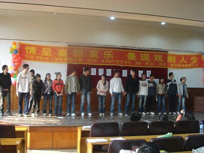 2008427下午一点半,以“情呈喜怒哀乐,景现戏剧人生”为主题的第二届情景剧大赛在逸夫报告厅正式拉开帷幕。