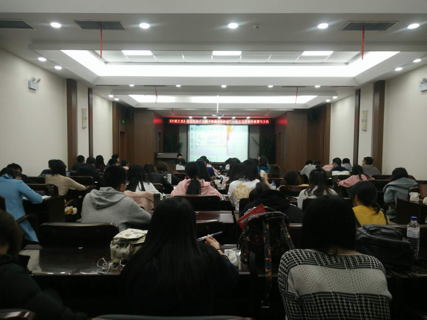 开场后,丛永清老师按照论文题目、文献综述、论文框架与论文结论等部分,为大家说明了写作方法与规范要求,并向大家传授了应对答辩老师提问的小技巧。之后,张力伟同学结合亲身经历,向大家分享了论文的分类、文献查找方法、专业期刊推荐以及“大创”经验等内容。两位嘉宾深入浅出、风趣幽默的话语,在频频引来同学们欢笑的同时,也使同学们收获到了许多非常实用的知识。