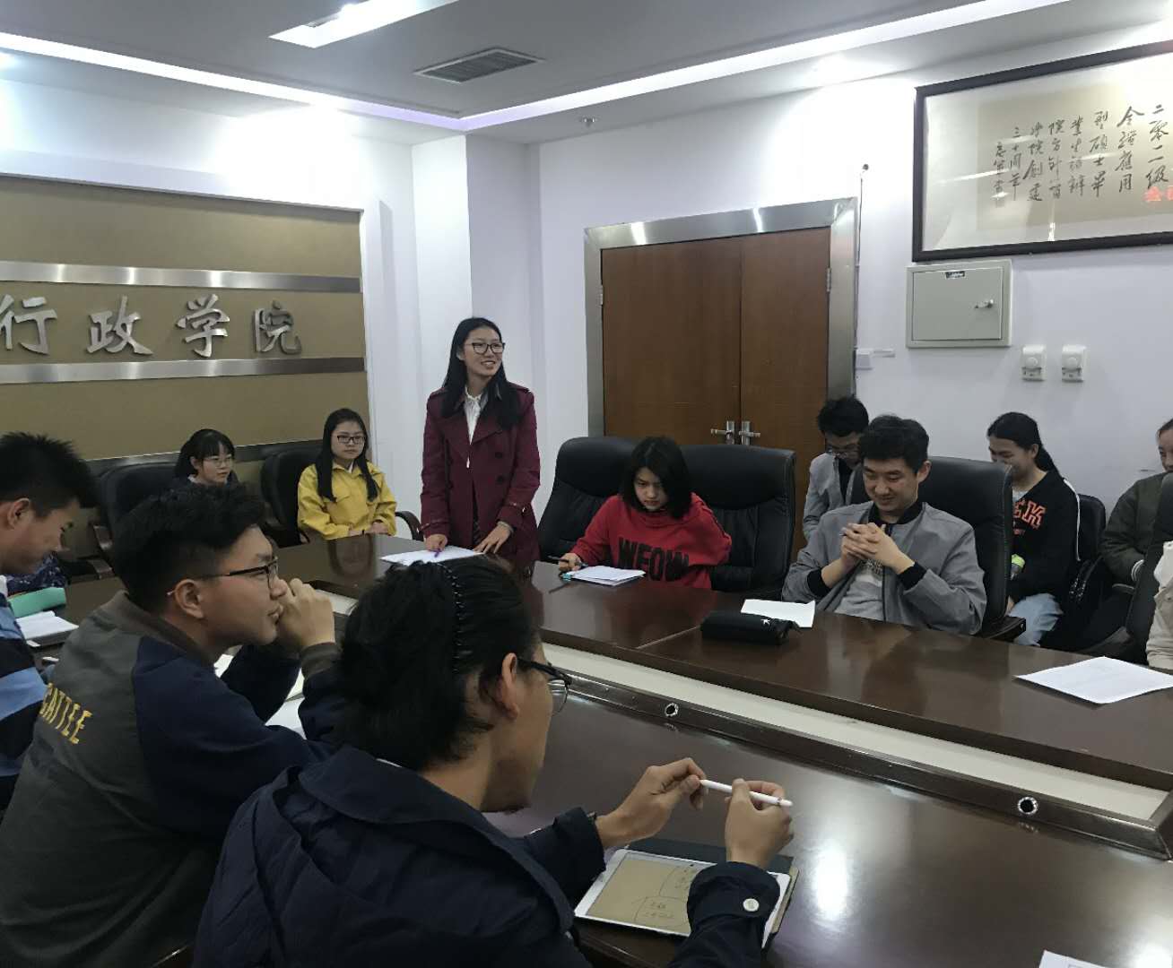 4月23日中午,我院081701班级全体师生在中心校区东荣大厦1214会议室召开了第三次班主任见面会。081701班本科生指导教师(班主任)、院长张贤明教授和薛洁教授参加了本次见面会。本次见面会由班长孟从华同学主持。