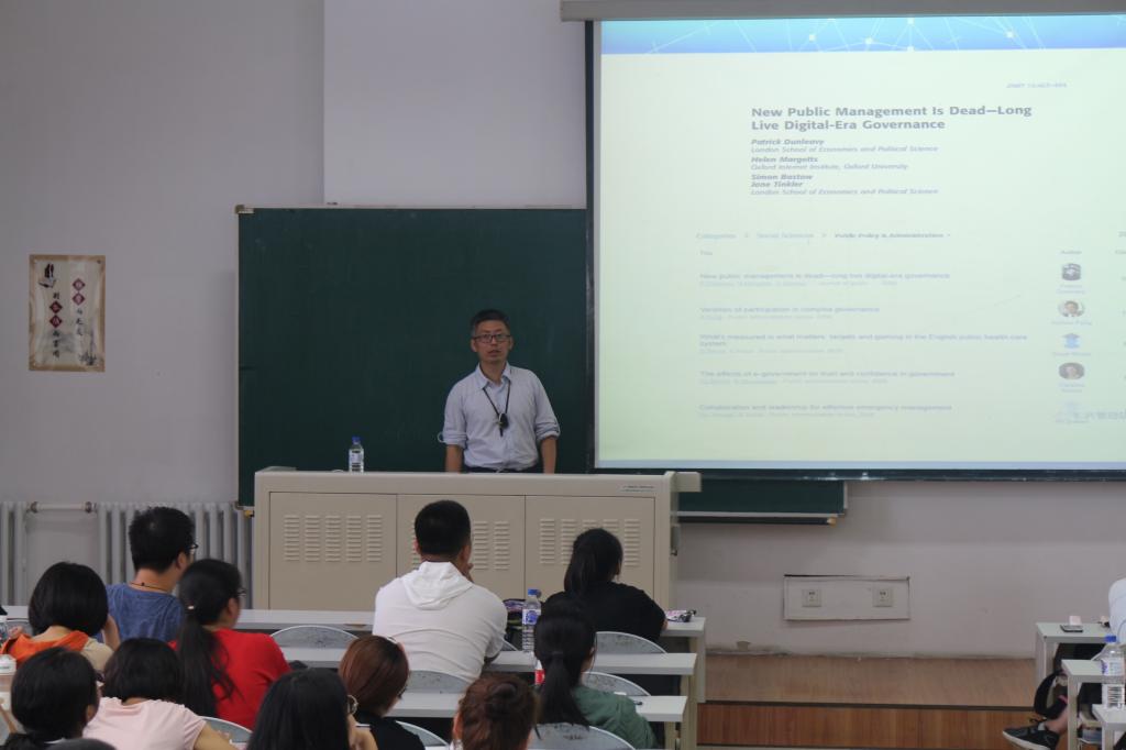 在下午的讲座中,于君博从摆脱“套路”、规范自由、学会专注、注重效率以及珍惜时间等方面向同学们提出了建议。之后以最近热度居高不下的疫苗问题为例,深入浅出地向同学们介绍了行政的职能以及它的全球性、区域性等特性。除此之外,于君博还为大家介绍了学科中著名的人物及思想,并阐述了行政人的责任,使同学们对行政管理专业有了基本的了解。