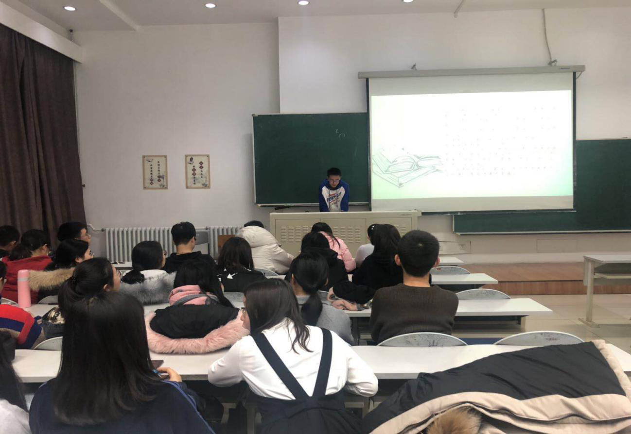 中心校区第三教学楼第十三阶梯教室举办了第二次团日活动。本次活动以“青春·奋斗·奉献”为主题,团支书王馨瑶担任主持,1班全体同学参与了本次活动。