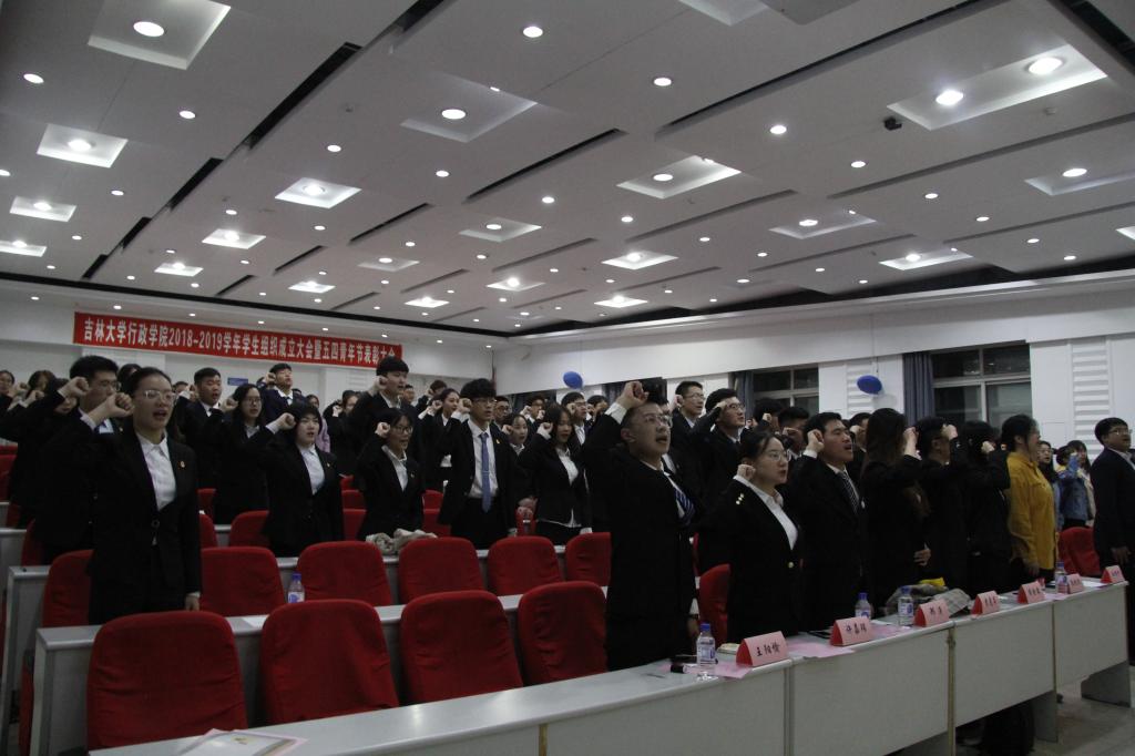 大会分为学生组织成立大会与五四青年节表彰大会两部分。学生组织成立大会在校歌中拉开帷幕。会上,依次宣读了2015级至2018级学生干部名单并举行了授旗仪式,顺利完成了学生组织的交接工作。周金霖(2015级本科生)、杜秀贞(2016级本科生)、岳梦梅(2017级本科生)作为学生干部代表分享了自己的经验与体会,最后,由常有余书记作了总结讲话。他在对学生组织已经获得的成就提出肯定的同时向同学们提出了几点希望:“一要做青年友,不做青年官。作为学生干部,学生是本分,干部是责任,不要有官气、娇气、傲气,要团结、帮助、服务同学,发扬优良传统。二要内强修养,外增本领。‘打铁还需自身硬’,学生干部要有良好的组织、协调、表达能力。要德才兼备、以德为先,要打好理论基础,树立正确的三观,为学生服务,做老师的助手,在奉献中锻炼提高自己。三要奋发有为,建设新时代。真真正正做一些事情,体现出自身的价值。”