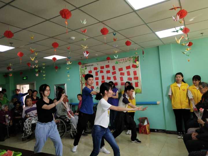 活动伊始,志愿者们为老人带来了精彩的歌曲表演,如王文欣(2018级本科生)演唱的《妈妈的吻》、许天伊(2018级本科生)献唱的《军港之夜》。吉云奇(2016级本科生)等四位同学带来的深受老人欢迎的太极拳表演及金胜昔(2018级本科生)与姜晓桐(2018级本科生)朗诵的诗歌《致橡树》等其他绘声绘色的表演收获了老人们善意的微笑与热烈的掌声。表演结束后,志愿者们与老人展开了友好互动,给老人们讲自己生活中的故事,也仔细聆听老人诉说自己的心声。在带给老人欢乐和温暖的同时,志愿者们积极清理会场,给养老院的工作人员留下了良好的印象。