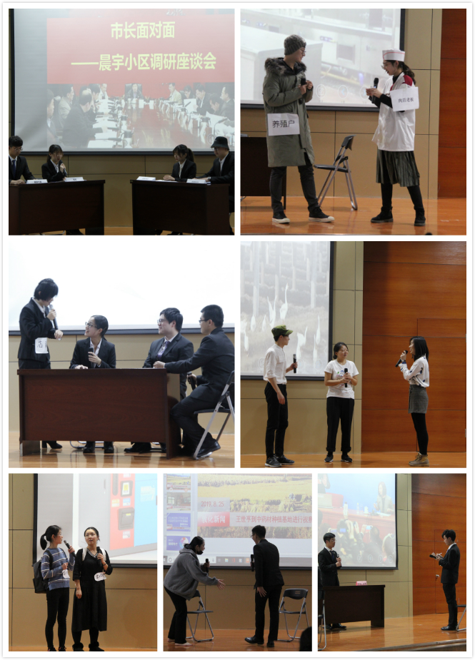 七支队伍先后通过“市长”个人展示、团队情景模拟、集体答辩的环节展现了各队的独到思考与研究成果。参赛队伍聚焦“社区生活空间”、“防沙治沙”、“猪肉保供稳价”、“垃圾分类”、“人才政策”、“资源衰退型城市的发展路径”、“互联网+”等议题。参加决赛各队的选题立足现实,探索城市治理之道,获得了评委老师的一致认可。