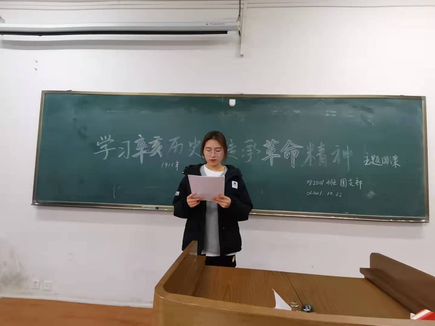 各班采取了多种多样的方式开展此次交流学习活动。082002团支部在团支书的组织下,同学们合唱了《打倒列强除军阀》、《唱支山歌给党听》与《社会主义好》等红色歌曲,互相交流了合唱感受和对辛亥革命的看法。通过歌曲合唱与交流环节,同学们更加深刻理解了这些歌曲在特定历史时期的特殊意义,让同学们更加感受到歌曲背后的革命精神。082004团支部于10月23日上午由李子荣(2020级本科生)带领参观了ManHub
